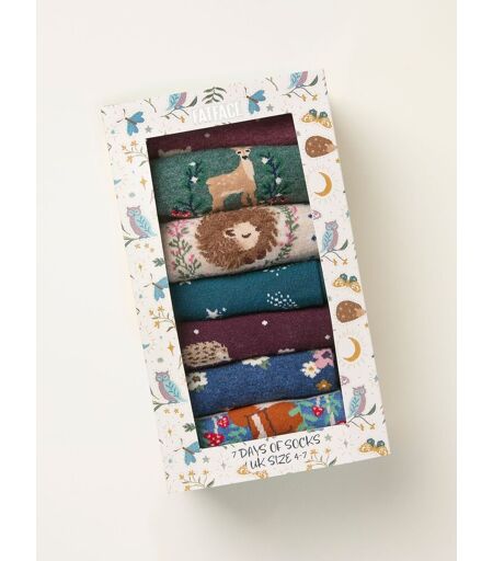 Fat Face Lot de 7 chaussettes FatFace Woodland pour femme dans un coffret cadeau
