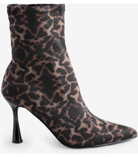 Sosandar Sosandar Black Leopard Print Flared Heel Sock Boots