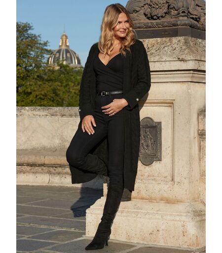 Sosandar Sosandar Black Cable Knit Button Cuff Longline Cardigan