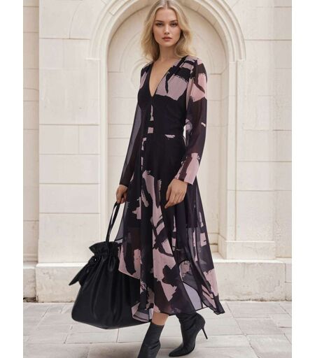 Religion Religion Infinity Manches longues Mi-long Robe avec ourlet en mouchoir en papier peint à la main Imprimé Noir