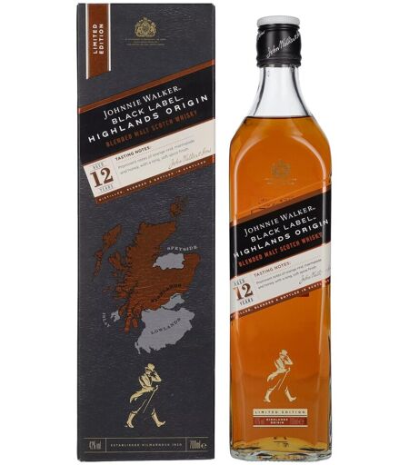 Johnnie Walker BLACK LABEL 12 Years Old HIGHLAND ORIGIN Limited Edition 42% Vol. 0,7l en boîte cadeau