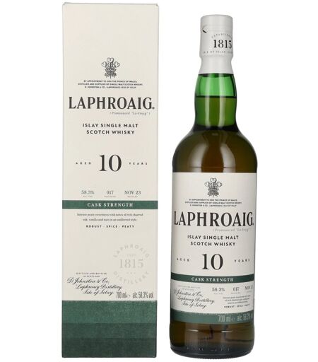 Laphroaig 10 Years Old Cask Strength Batch 17 58,3% Vol. 0,7l en boîte cadeau