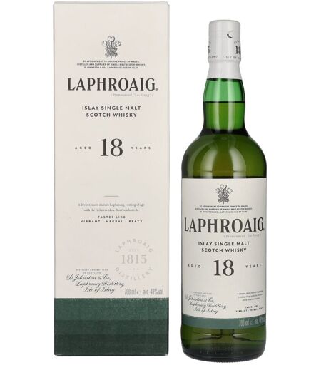 Laphroaig 18 Years Old Islay Single Malt Scotch Whisky 48% Vol. 0,7l en boîte cadeau