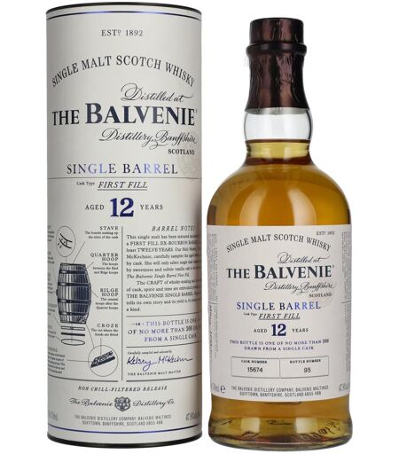 Le whisky Balvenie The Balvenie 12 Years Old Single Barrel First Fill 47,8% Vol. 0,7l en boîte cadeau