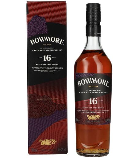Bowmore 16 Years Old Ruby Port Cask Finish Islay Single Malt 43% Vol. 0,7l en boîte cadeau