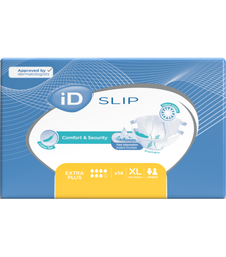 ID Expert Slip - Extra Plus Change complet adapté aux pertes urinaires et fécales importantes. • Fixation facile grâce à des attaches fiables qui maintiennent la protection bien en place. • Son cœur multi-couches absorbe efficacement et aide à garder la peau sèche. • Doté de barrières latérales pour empêcher les fuites accidentelles. • Sa forme ergonomique épouse parfaitement les courbes du corps. Tour de hanches Absorption Iso Conditionnement SMALL 50 à 90 cm 2200 ml 14 pièces MEDIUM 80 à 125 cm 2600 ml 28 pièces LARGE 115 à 155 cm 2950 ml 28 pièces XL 120 à 170 cm 3250 ml 14 pièces Gamme complète ID Expert Slip Capacité d'absorption Normal Moyenne Plus Forte Extra Forte Extra Plus Très forte Super Très forte Maxi Maximale Absorptions disponibles dans la gamme ID Expert Slip : ID Expert Slip Plus ID Expert Slip Extra Plus ID Expert Slip Super ID Expert Slip Maxi ID Expert Slip Maxi Prime ...