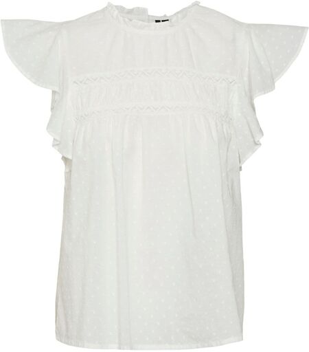 VERO MODA VERO MODA White Dobby Lace Detail Short Sleeve Blouse