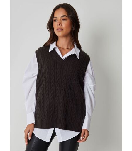 Keep it cosy and effortless with this cable knit vest from Threadbare, the perfect layering piece for instant elevation. Cable knit design. Ribbed V-Neck and hem. Sleeveless with ribbed armholes. Side splits. Lavable en machine. Acrylique 100%. ...