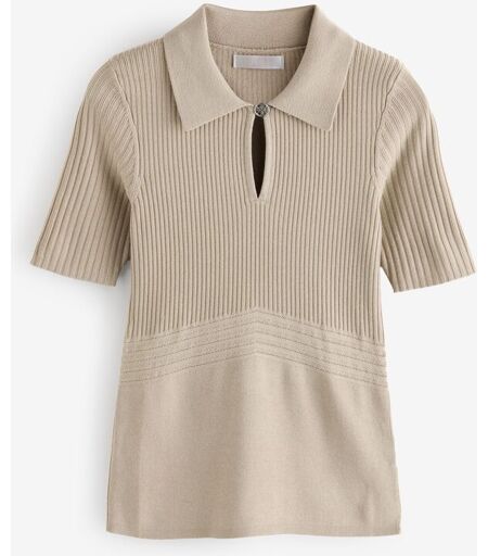 Short sleeve polo shirt. Cut out detail. Ribbed texture. 100% Cotton. ...