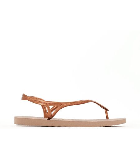 Un superbe jeu de bride qui s'enroule autour du pied dans un mouvement hyper féminin et stylé pour cette belle tongs signée par la mythique marque Brésilienne HAVAIANAS !Les authentiques tongs brésiliennes déclinées dans un nouveau modèle de sandales, très urbain, plus féminin, confortable et élégant. La nouvelle bride, très confortable, s'adapte parfaitement au style de vie des amoureuses de Havaianas. Disponibles dans une large gamme de coloris. Fabriquées au Brésil.Détails produit Talon plat Fermeture : A enfiler Bout rond bride à chevron de type frise grecque Dessus de la semelle à motif grains de riz et dessous à motif paille de riz. Avantages : confortables, solides, légères, résistantes à la chaleur et à l'eau, et antidérapantes.Composition et Entretien Dessus/Tige : 100% pvc (polychlorure de vinyle) Doublure : 100% pvc (polychlorure de vinyle) Semelle intérieure : 100% caoutchouc Semelle extérieure : 100% caoutchouc ...